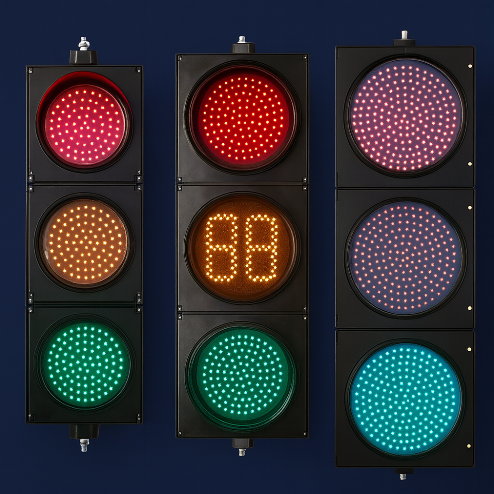 โคมไฟสัญญาณจราจรมีให้เลือกหลายแบบและออกแบบเพื่อระบบควบคุมการจราจรยุคใหม่รองรับการทำงานตลอด 24 ชม. ภายใต้ทุกสภาพอากาศ ควบคุมการทำงานด้วยไมโครคอลโทรลเลอร์ (Microcontroller)ที่ให้ความแม่นยำสูง พร้อมระบบป้องกันไฟกระชากและแรงดันไฟเกิน เพื่อความปลอดภัยและความทนทานสุงสุด เหมาะสำหรับการติดตั้งในพื้นที่ถนนหลัก ทางแยก หรือโครงการSmart traffic/ Smart City